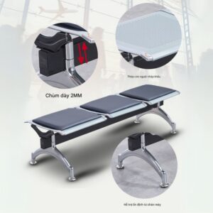 Ghế băng chờ không tựa 2-3-4-5 chỗ ngồi. Ghế bằng sắt sơn tĩnh điện, giá đỡ bằng sắt sơn đen.