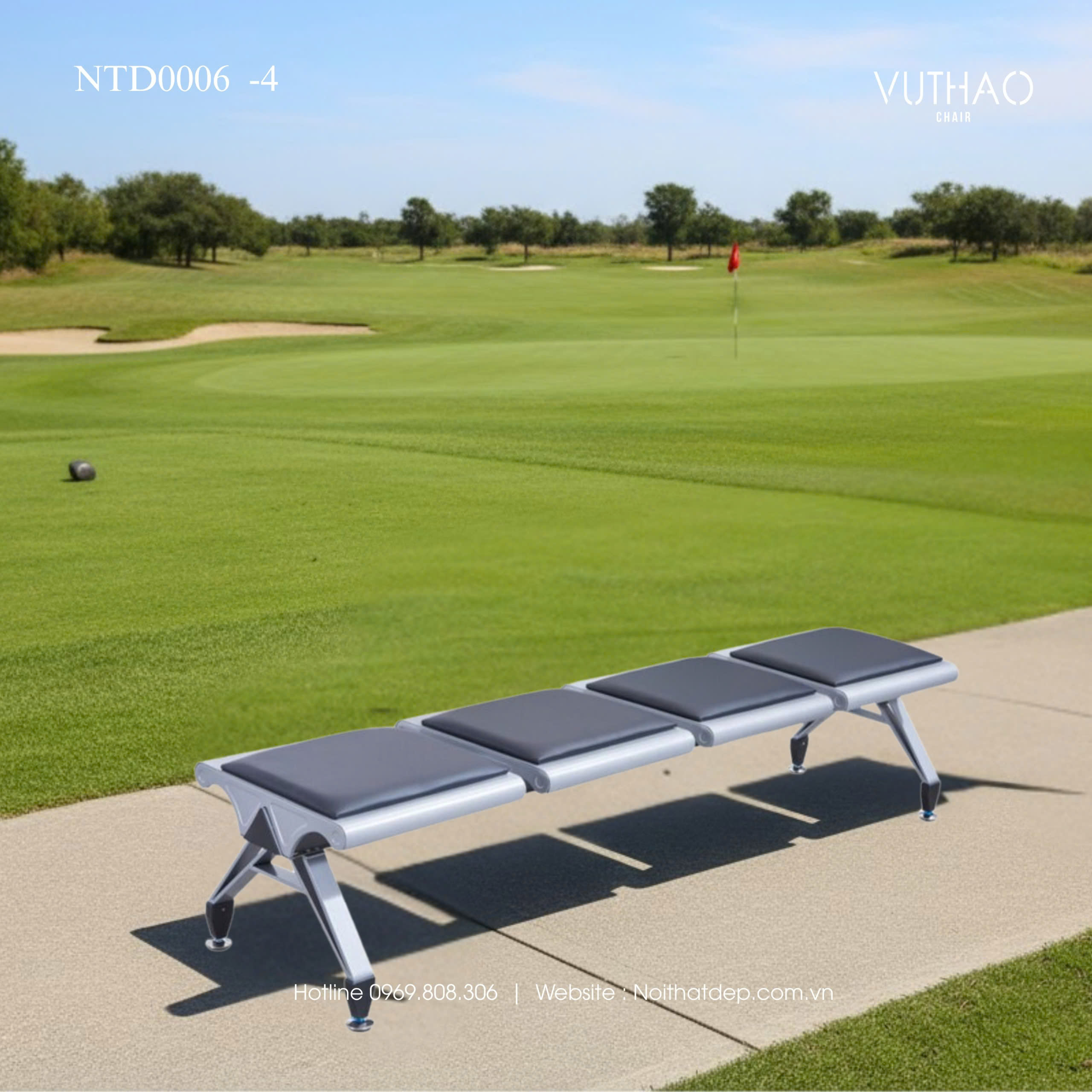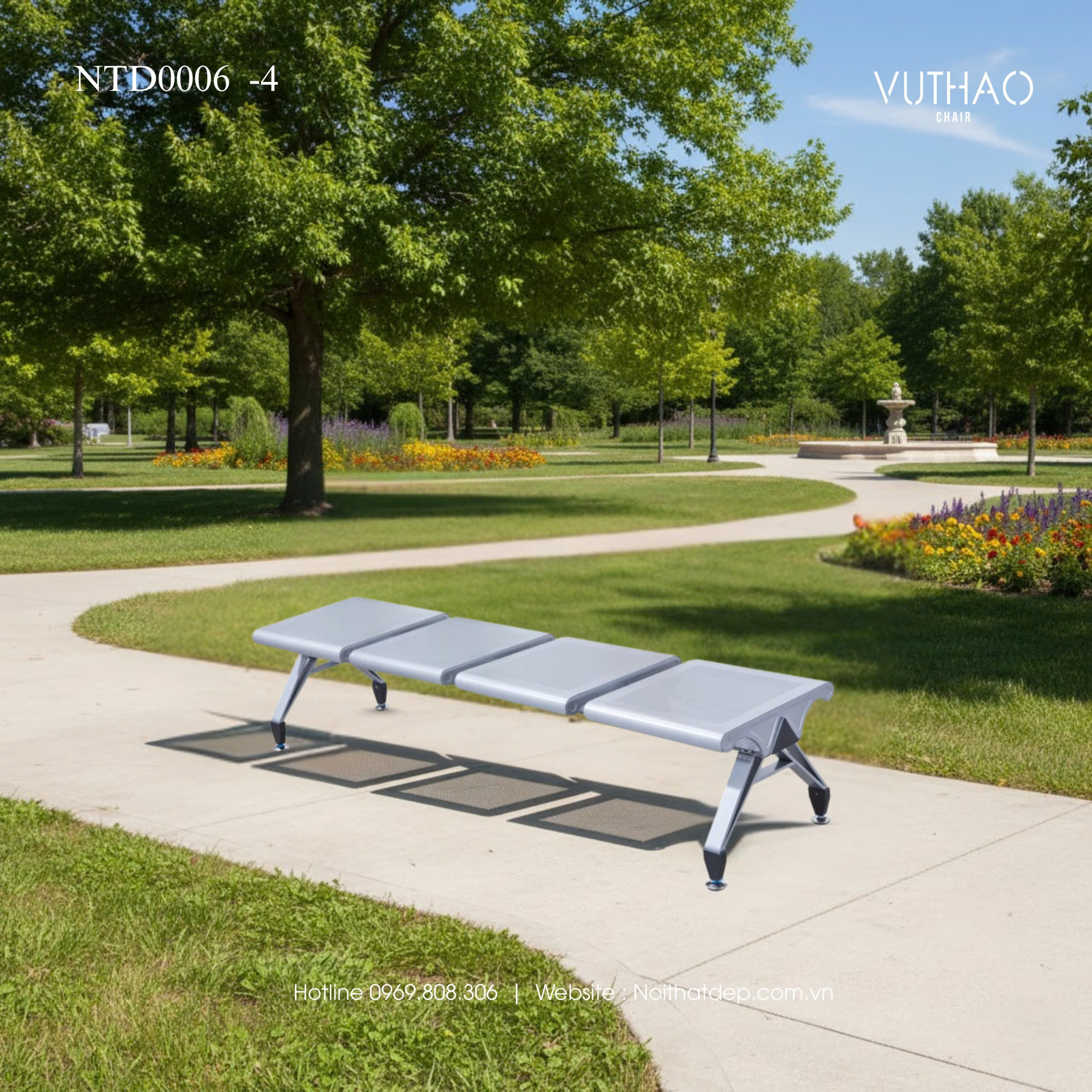 Ghế băng chờ không tựa bằng sắt sơn tĩnh điện. Chân có nút tăng chỉnh, khung giá đỡ tam giác bằng sắt sơn đen.